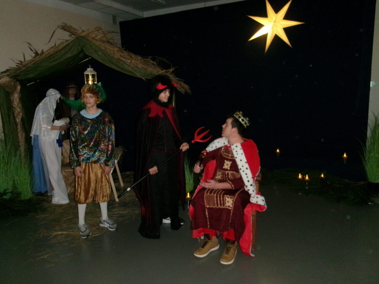 Judyta Adamus – pasterz, Anna Babiej – pasterz, Zuzanna Minichowska – pasterz, Aleksandra Piecyk – anioł, król Baltazar; Dominika Rutkowska – anioł, król Melchior; Daria Wójcik – anioł, Nadia Pawluk – Maria, Mateusz Stanaszek – Józef, Adam Listwan – śmierć, Tobiasz Berczyński – diabeł, Stanisław Słowik – Herod, król Kacper; Szymon Strzelecki – hetman.