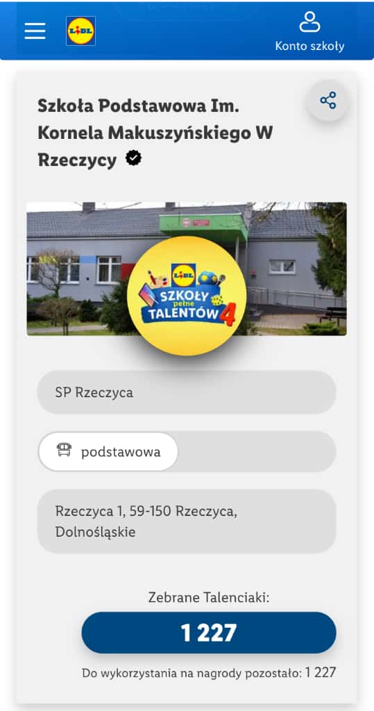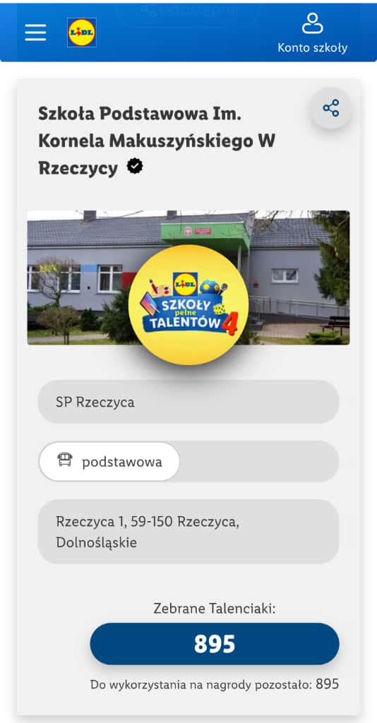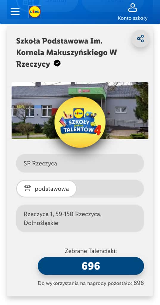 Zapraszamy do udziału w akcji “Szkoły Pełne Talentów” – LIDL dla szkół. Akcja trwa od 1.09.2025 r. do 31.10.2025 r.