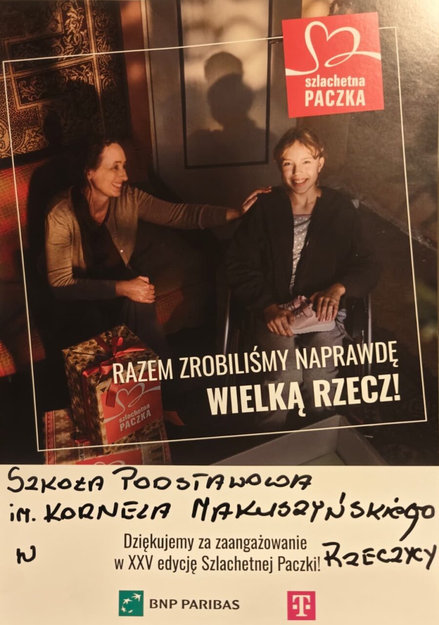 Szlachetna PACZKA w szkole, to świetna lekcja wrażliwości, współpracy i pomagania. Z radością przekazujemy informację, że przygotowane przez naszą szkołę paczki zostały dostarczone do magazynu w Polkowicach! Stamtąd pojadą do Pani Cecylii.